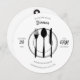 Convite de janto redondo personalizado elegante com um fundo branco limpo com texto na moda preto. Adorados com ilustrações charmosas de uma colher, garfo, faca, placa e comida coberta no fundo, perfeitas para eventos sofisticados e reuniões especiais. Faça seu convite se destacar com este design refinado.