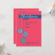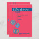 Três Enfeites de natal de estilo retrô laranja e azul, ligeiramente contrabalançados com um fundo vermelho brilhante, um doce, diferente olhar para as celebrações de Natal.