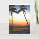 Um convite especial de janto de ensaio com lindas cores ao longo da borda do oceano com palmeiras a moldar as nuvens ao longo do horizonte.