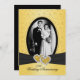 Este convite de aniversário de casamento de 50 anos com flores pretas e douradas tem uma faixa preta com um par de corações unidos dourados e diamantados impressos com brilho falso nela, com uma área de modelo para carregar sua própria foto digital. O envelope e cartão de confirmação correspondentes são mostrados abaixo. Se você precisar de outros itens correspondentes neste design, por favor envie um e-mail para niteowlstudio@gmail.com.