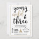 Este convite do Jovem Selvagem e Três apresenta uma falha de brilho dourado para dar um pouco de glamour ao seu tema rústico!