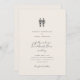 Este convite para o casamento apresenta um design elegante e minimalista que belamente equilibra sofisticação com simplicidade. No topo, uma ilustração delicada da arte da linha de dois noivos andando de mãos dadas dá um tom gracioso e íntimo. Os nomes dos casais são exibidos com destaque em uma fonte serif clássica, seguida de um convite sincero em um moderno roteiro manuscrito, que adiciona um toque pessoal. Os detalhes do convite, incluindo a data, hora e local, são apresentados em formato limpo e fácil de ler no centro do cartão, garantindo que todas as informações essenciais sejam claras e acessíveis. O design é centrado num fundo macio e creme, criando um eterno e um aspecto refinado. Este convite é perfeito para casais que buscam um caminho na moda e subestimado para convidar convidados para seu dia especial, com ênfase na elegância e na simplicidade significativa.