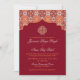 Elegante, ornamentado e intricado padrão arabesco vermelho e laranja arabesco estilo indiano convite para o casamento étnico. As cores do convite são burgundy (vinho, sangria, marrom) e laranja (persimmon). Cores negros perfeitos para um casamento índio ou mesmo árabe. Você pode personalizar todo o texto deste convite para o casamento. Para alterar o texto, use as opções personalizar. Ou, para alterar a fonte, o tamanho da fonte, a cor da fonte ou o posicionamento do texto, escolha personalizá-la.