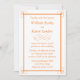 Este convite popular de cor laranja é a forma perfeita de convidar seus amigos e família para o seu casamento. Este convite personalizado apresenta um elegante design de rolagem e texto cor de laranja. Você pode usar o exemplo de convite de casamento incluído ou personalizar o texto para qualquer outro evento, como uma graduação ou festa de aniversário. Você pode facilmente alterar a fonte, a cor do texto e o texto da página de pedido do produto.