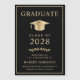 Elegante mantém o anúncio magnético do formandos preto com boné de formatura de ouro e tipografia de ouro moderna para o nome do formando, ano de aula, universidade ou universidade, grau e grande ou honras.