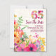 Defina o tom para a sua celebração de marco com este elegante convite para a imã salve a data de 65 anos. Apresentando um fundo de linho macio com um vibrante "65" floral, este design personalizável é perfeito para compartilhar os detalhes de sua próxima festa com a família e os amigos. Aproveite!