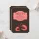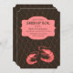 Um design maravilhoso que é perfeito para uma ebulição de camarão ou para um convite para uma celebração num restaurante de frutos do mar. O fundo off-black apresenta um padrão de rede e dois camarões. Um painel decorativo guarda os detalhes de sua festa. (FP)