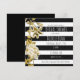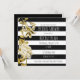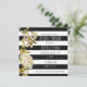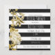 Convite Listrado Preto e Branco Floral Tom Dourado. Personalize para qualquer evento.