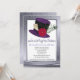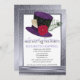 Este doce 16 é para o tema louco do tea party do Hatter e o fundo cinzento delicado da cor damasco das características com o chapéu alto louco do Hatter com uma pena do pavão e uma flor. Muito chique e elegante. Verificação para fora nosso cargo do blogue para ideias loucas do tea party do doce 16 do Hatter em www.weddingbydesigns.com personalizado facilmente com sua informação. :: OS ENVELOPES INCLUÍRAM::