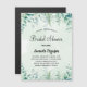 Um fundo de cor aquosa verde com verde de eucalipto e samambaias florestais. Personalize e adicione um nome e detalhes da parte.