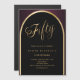 Um elegante 50º convite de aniversário magnético. Um fundo preto e arrojado com um arco de ouro na frente.