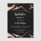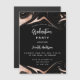 Um convite ao estilo moderno para uma festa de formatura. Um fundo preto decorado com espirais de ouro rosa. Personalize e adicione um nome e detalhes da parte. O texto Graduação e o nome são escritos com um script de estilo moderno, escrito à mão. Texto branco colorido.