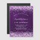 Um ímã de convite moderno, na moda e glamouroso para uma festa de aniversário de 21ruas (ou qualquer idade). Um fundo roxo profundo, colorido, com poeira cintilante rosa. A cor roxa é irregular. O nome é escrito com um moderno estilo escrito à mão. Personalize e adicione os detalhes da sua festa.