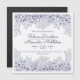 Íman de convite para casamento azul e branco para qualquer época do ano. Seus detalhes são acentuados pelas bordas de cima e de baixo da linha desenhada dianthus, lírio do vale, folhagem e insetos de senhora.