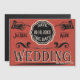 Vermelho, preto e creme O design gráfico do estilo Vintage apresenta dedos apontados ou mãos apontadas, um na moda emblema, ornamentos, as palavras salvar a data e o casamento. Preencha o nome das noivas, o nome do grupo e a data.
