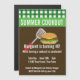 Este convite de festas magnético de bolachas apresenta um cheeseburger e uma espátula e uma toalha de mesa verde e campos de texto para as informações do seu partido.