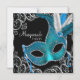 Convite Magnético Festa de Mascarada Negro Azul Teal