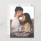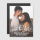 Salve o casamento dos ímãs de anúncio de data com uma foto de noivado de retrato com o design de sobreposição "Salvar a data" em um script branco na moda. Personalize com uma foto de noivado e um texto personalizado.