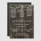 Lenha rustic Barn, luzes de cordas balançando mason jars Magnética Salve a data. Produtos correspondentes também disponíveis.