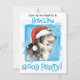 Convide todos os seus amigos para uma festa de boas festas neste Natal com um convite mostrando um malemute bonito no Alasca vestindo um chapéu de Papai Noel em meio a um monte de flocos de neve. Festa Feliz de Howliday!