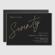 O 70 minimalista moderno apresenta o na moda faux gold foil number guião manuscrito Senty e os detalhes do seu partido em serif clássico sobre cor preta de fundo, simples e elegante convite de aniversário para homens e mulheres para o excelente surpresa. a cor preta de fundo pode ser alterada para qualquer cor da sua escolha.