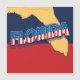 Mapa da Flórida com estrelas e listras em estilo dos anos 50.
