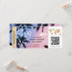 Destino Bilhete de Passagem de Embarque Casamento na Praia Dourado Avião Salve a Data com ícone de Navio de Cruzeiro com folhas tropicais. Adicione seu Código QR