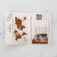 Modern Boho World Map Invitation Destination, como passaporte, com seu monograma. Adicione seu código QR. Terracotta queimou cor de fundo laranja