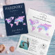 Destino de Casamento de Convite Moderno e único, como passaporte com mapa holográfico mundial