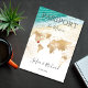 Convite moderno e elegante com um mapa mundial de destino de casamento no México, como passaporte