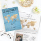 Convite moderno de destino de Casamento na República Dominicana, Punta Cana, com mapa do mundo, como passaporte com mapa do mund dourado