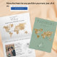 O Mapa do Mundo Moderno e Elegante Convocando Casamento de Destino, como passaporte. Cor verde-sábio. Localização da ilha tropical, México, Jamaica...Mexa o coração onde quiser! A textura do couro é simulada no trabalho de arte.