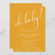 Convite Marigold, Script Moderno do chá de fraldas - Um design simples e moderno e minimalista que apresenta Oh Baby! em uma fonte moderna, escrita. Mostrado alegre, Marigold.