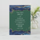 Convites de casamento Dourado Azul Faux. Design variegada de agitação falsa. As cores do convite médio podem ser facilmente alteradas com o modelo ajustável. Opção amigável ao orçamento. Textura de fundo elegante de pedra falsa/aparência de mármore. Convites de casamento personalizados.