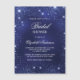 Um convite moderno, na moda, glamouroso para um Chá de panela. Um fundo azul marinho, decorado com faíscas de brilho. A cor azul é irregular. Personalize e adicione um nome e detalhes da parte.