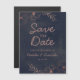 Design de Casamento de Borda Floral de Folha Azul e Rosa marinho Gold com flores desenhadas à mão, Folhas e fundo de aquarela. Um chic e um moderno Procure por um outono ou casamento no inverno, com paleta de cores ousadas: azul Marinho e detalhes de folha falsa ouro rosa. Elementos Florais desenhados à mão, Fonte moderna do Script de tendências - Casamento personalizado Salve o Cartão de Convite Magnético de Data! Veja meu compro para ver a suíte de casamento inteira para este design!