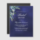 Um convite magnético moderno, na moda, glamouroso para um Chá de panela. Um fundo azul marinho, decorado com verde. A cor azul é irregular. Personalize e adicione um nome e detalhes da parte.