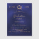 Um moderno e elegante ímã de convite à festa de formatura. Um fundo azul marinho, texto do ouro. A cor azul é irregular. Personalize e adicione um nome, ano e detalhes.