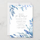 convite de casamento magnético de folhagem azul e branca marinho concebido para ser rápida e facilmente personalizado em função das suas especificações de evento.