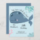 "Vamos ter uma baleia de tempo" no convite de aniversário do mar.