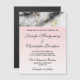 Um convite de casamento magnético com um padrão elegante e moderno marmoreado. Cinzas brancas, pretas e enfumaçados marmoreadas com fitas finas de espirais douradas ao longo do padrão. Um fundo gradiente de rosa claro debaixo do padrão marmoreado.