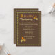Um convite festivo com o chapéu de um peregrino, folhas de outono e as palavras "Feliz Ação de Graças", todas enquadradas com uma marca pontilhada contra um pano de fundo marrom. Concebido por (vt)