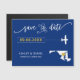Você escolheu um lugar especial para o seu casamento. Agora é hora de celebrá-lo com este cartão de imã salve a data keepsasasasasasasasasak, com um mapa da silhueta e um pequeno avião indo para o seu destino. Para mover o coração para o lugar do seu casamento, clique em personalizar e, em seguida, "personalizar ainda mais".