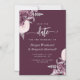 This elegant wedding save the date magnetic card features mauve floral bouquets set off with silver faux foil greenery in two corners, on a deep mauve background. The customizable text combines silver gray serif, italic and handwriting fonts.