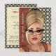 Este é um retrato feminino divertido, com uma menina muito triste vestindo óculos de gato e esportando um sorriso de cabelo glamouroso de colmeia que parece estar atraindo muita atenção! As pequenas abelhas zunidas e o pano de fundo vintage pintado adicionam os toques finais a este design de estilo de pop. Um convite para excelentes de múltiplos propósitos para funções que envolvem cabelos e beleza, estilos retrógrados de moda ou um convite humorístico para as partes envolvidas.