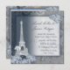 O papel metálico Dourado foi selecionado para este contexto da torre Eiffel com impressão do damasco de paisley e acento azul das folhas e da flor da prata. Mude facilmente detalhes para seu convite de casamento. Outros estilos e cores do papel estão disponíveis. Olhar contudo na moda do vintage para a noiva de hoje. A torre Eiffel é perfeita para o casamento temático francês ou francês. Edite facilmente para seu próprio convite do casamento. Apresente seus convites no estilo!