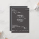 Este design elegante é perfeito para qualquer casamento minimalista. Um belo e elegante fundo preto com detalhes escritos em branco. Certifique-se de verificar nossos itens correspondentes.