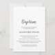 Este convite minimalista ao batismo do bebê é perfeito para um batismo elegante ou batizante para uma menina ou um menino. O simples design apresenta uma caligrafia de cinza escura com uma tipografia contrastante. Você pode personalizar este convite versátil mudando o fundo e o texto para qualquer cor ou adicionando seu próprio trabalho de arte e gráficos.