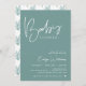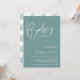 O convite ao chá de fraldas teal em estilo minimalista, com um padrão verde e sensual de volta. Você pode personalizar este convite com seus próprios detalhes na seção "Personalizar este modelo".