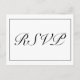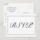 Cartão postal RSVP para sua celebração. Casamento, Chás, ou outras ocasiões. Design moderno minimalista preto e branco com moldura preta fina. Mais itens estão disponíveis neste estilo em nossa loja. Você pode editar o design ainda mais, alterar a cor do fundo, fontes e adicionar texto extra clicando no link "personalizar ainda mais".